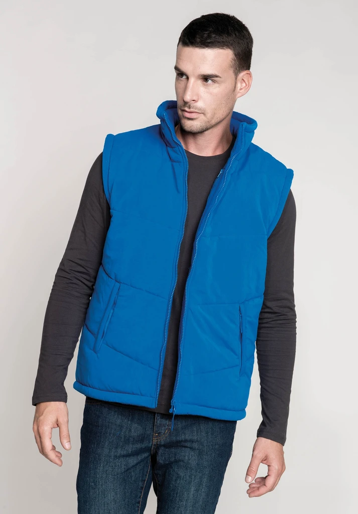 2 kapsy na zip, 1 vnitřní kapsa na suchý zip, zip po celé délce, barva zipu ve stejné barvě jako vesta.