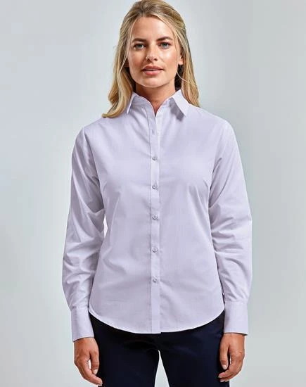 Stylová dámská halenka s dlouhým rukávem ve 27 barvách. Tato halenka nabízí nositelce polopřiléhavý ženský styl s měkkým límečkem, poprsím, zadními záševky a zaobleným spodním lemem.