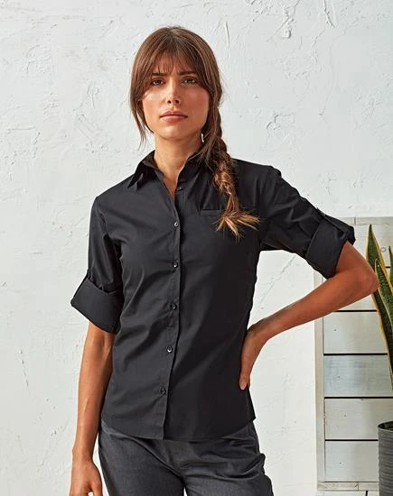 Oblíbený styl u barového personálu, který potřebuje mít vyhrnuté rukávy a bezpečně připevněné na místě. Zpočátku halenka s dlouhým rukávem, rukáv lze vyhrnout a zapnout pomocí poutka a knoflíku na paži.