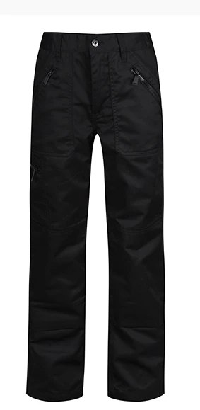 Částečně elastický pas s poutky na pásek, zapínání na kovový knoflík a zip, zesílený šev v rozkroku, 2 přední kapsy na zip, 1 s malou kapsičkou na mince, 2 zadní kapsy, 1 boční kapsa na zip, zesílené švy s trojitým prošíváním