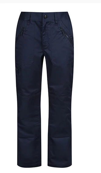 Částečně elastický pas s poutky na pásek, zapínání na kovový knoflík a zip, zesílený šev v rozkroku, 2 přední kapsy na zip, 1 s malou kapsičkou na mince, 2 zadní kapsy, 1 boční kapsa na zip, zesílené švy s trojitým prošíváním