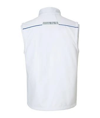 Stojatý límec, prodloužený zadní díl, elastický šev na průramcích