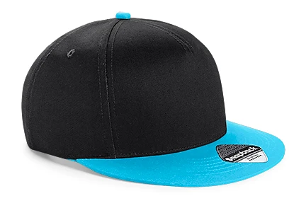 Štítek TearAway pro snadnou změnu značky, 5 panelový design, plochý kšilt, autentická kšiltovka, prošitá ventilační očka, kontrastní detaily, retro styl nastavení velikosti Snapback, nastavitelná velikost pro mládež (53 - 58 cm)