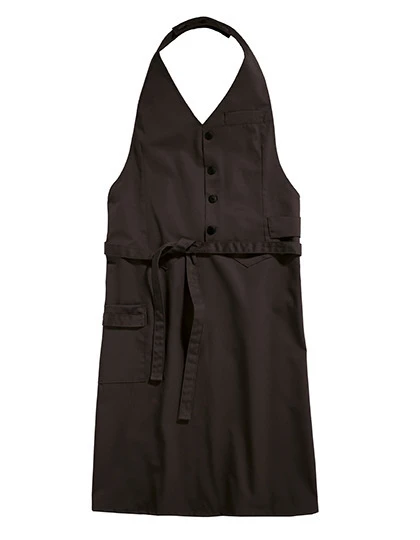 Vesta s jemnými proužky a se 4 ozdobnými knoflíky, vázanka nastavitelná pomocí 3 knoflíčků, našitá boční kapsa (17 x 19 cm) se 2 přihrádkami, 2 poutka, unisex střih, odolný nemačkavý materiál, jednoduchá údržba, všechny barvy lze prát na 95°C.