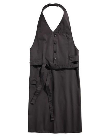 Vesta s jemnými proužky a se 4 ozdobnými knoflíky, vázanka nastavitelná pomocí 3 knoflíčků, našitá boční kapsa (17 x 19 cm) se 2 přihrádkami, 2 poutka, unisex střih, odolný nemačkavý materiál, jednoduchá údržba, všechny barvy lze prát na 95°C.