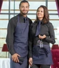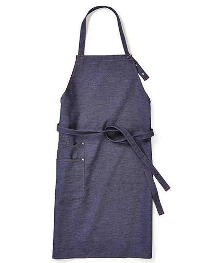 Odolná džínovina, 2 velké našité boční kapsy, 2 kapsičky na pero, nastavitelná délka stuhy kolem krku se 3 cvočky, zavazovací stuhy ze stejné látky jako zástěra, zesílená namáhaná místa na stuhách.